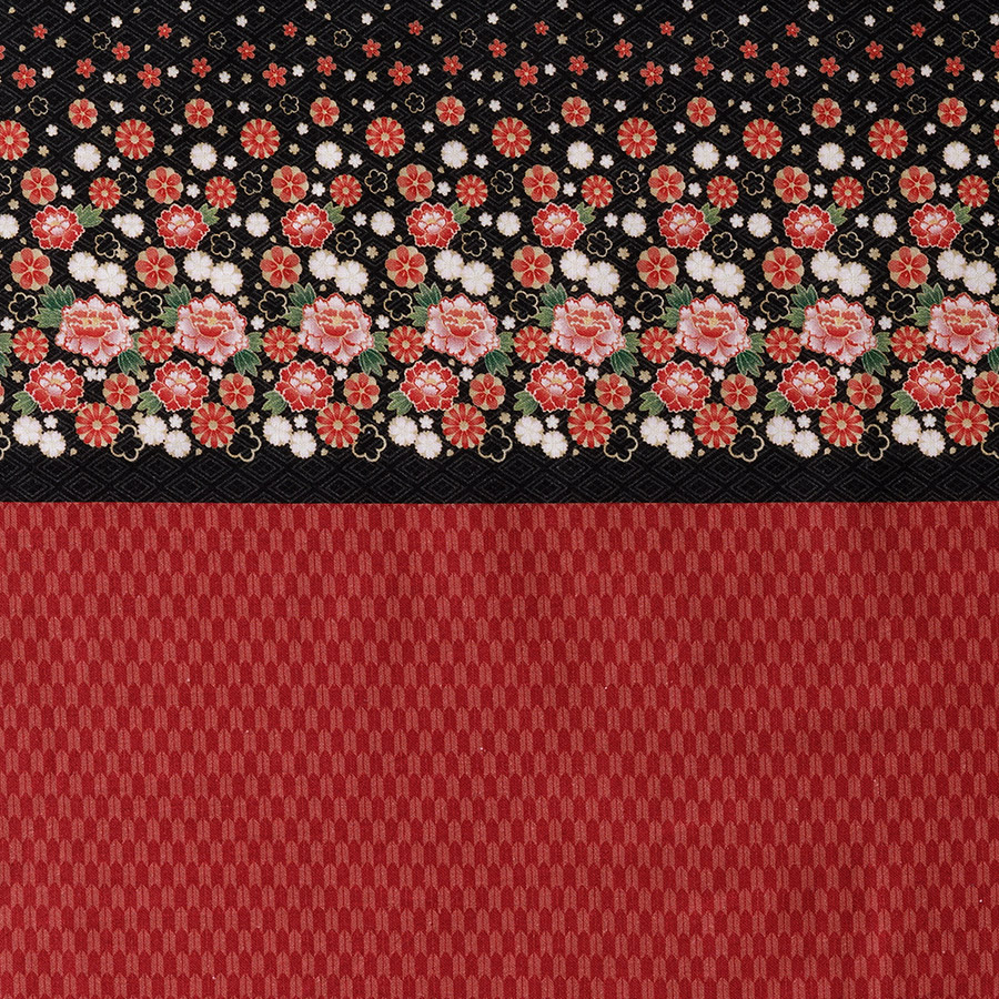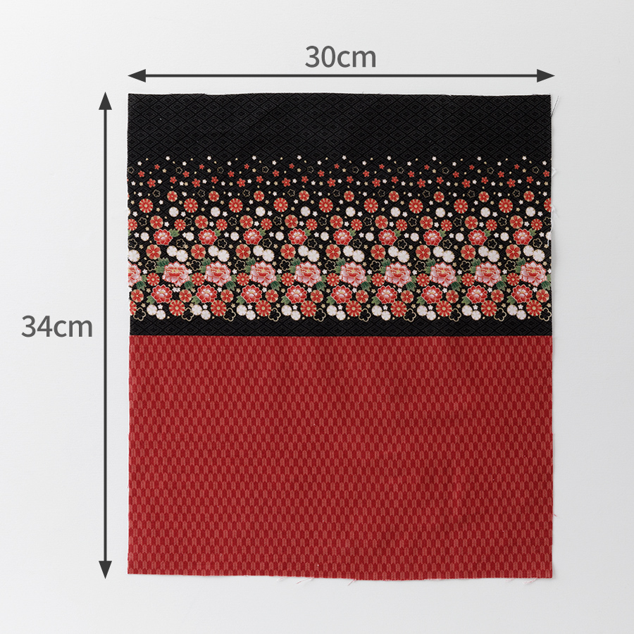 ドール服用生地 Decora Doll デコラドール/ちいさな世界のちいさな生地 着物 朱花×矢絣 W34×30cmカットクロス ぬい服