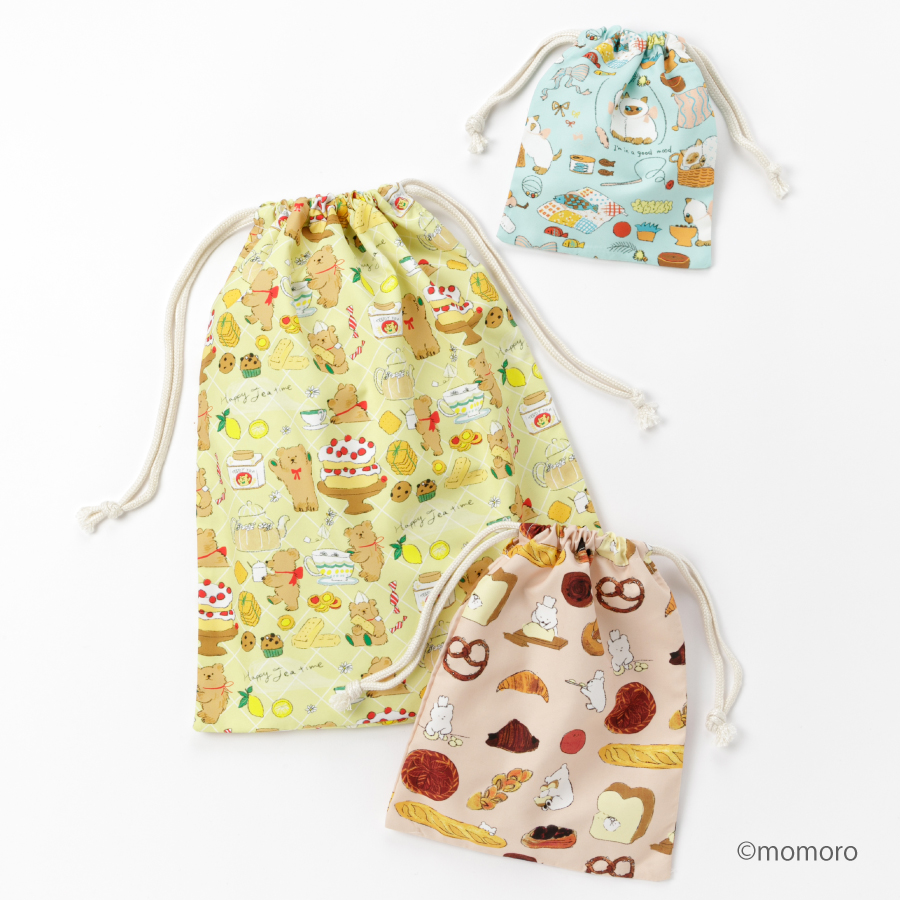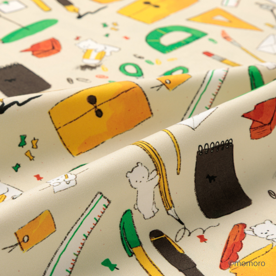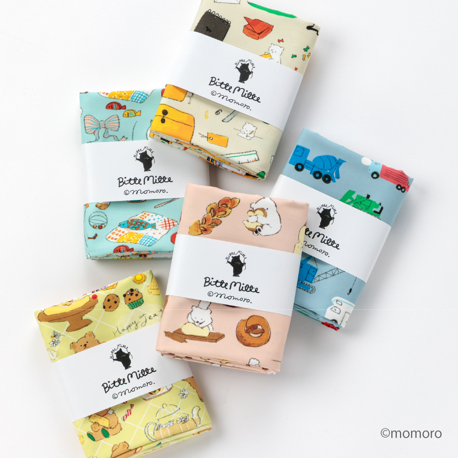 イラストレーター・絵本作家「ももろ」さんの描く、絵本の世界から飛び出してきたようなかわいいイラストが生地になりました。
