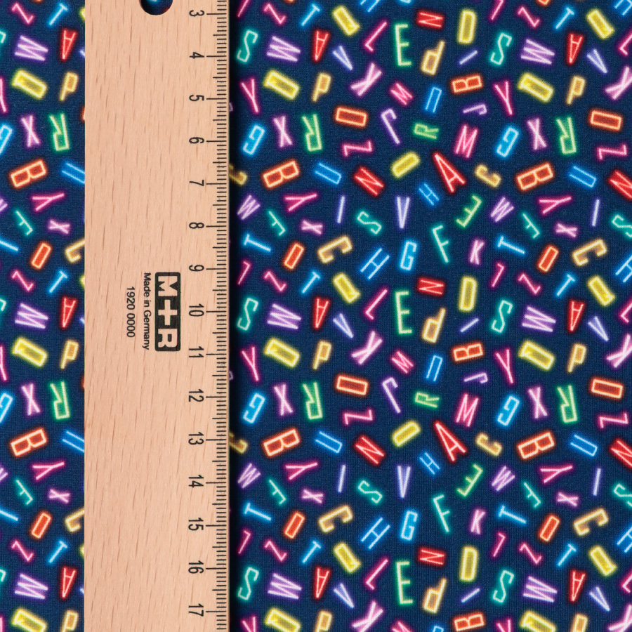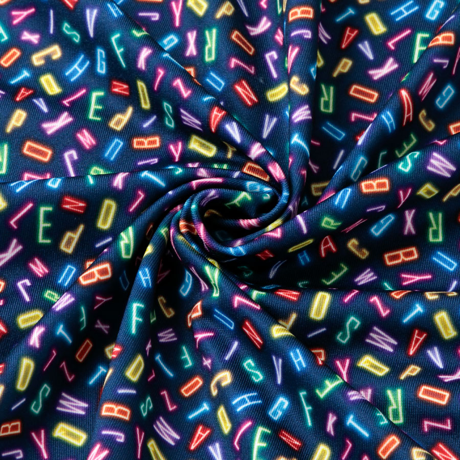 ドール服用生地 Decora Doll デコラドール/ちいさな世界のちいさな生地 ネオンアルファベット W38cm×38cmカットクロス ぬい服 スムースニット生地